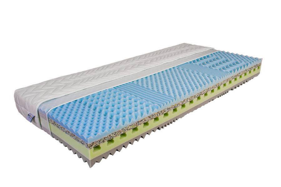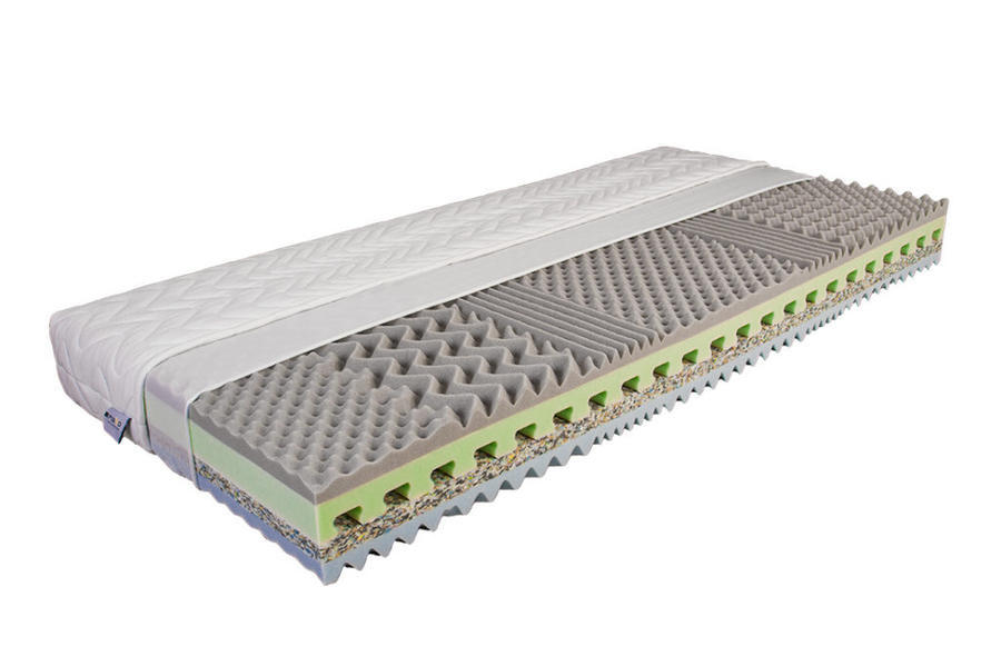 Kvalitní matrace s antibakteriální viskoelastickou pěnou nové generace. Jádro je složeno z elastické pěny gramáže 32kg/m³ a velmi tuhé vrstvy z pojené PUR pěny. Na povrchu jsou vrstvy se sedmizónovým profilem, který pomáhá udržovat optimální prostředí mezi potahem a pokožkou. Antibakteriální viskoelastická pěna s ionty stříbra chrání Vaši matraci před nežádoucími bakteriemi. Tužší a měkčí strana. Snímatelný potah z třívrstvé pleteniny s plošným proševem. Potah lze rozepnout na dvě poloviny a prát při 60°C. Matrace je vhodná na lamelový rošt nebo pevnou podložku.